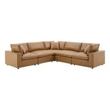 Modway Commix 5-Piece Modern Faux Leather Sectional Sofa in Tan Finish | Cymax Business