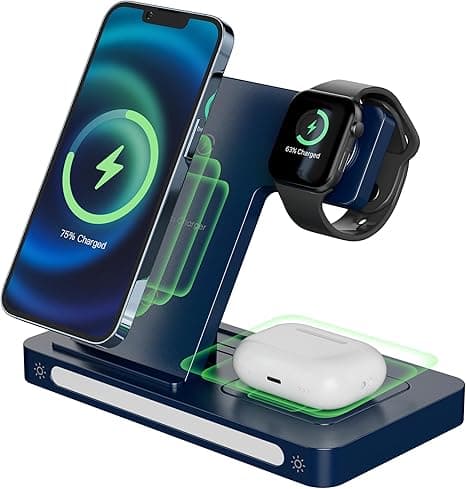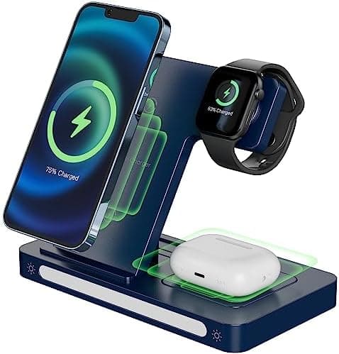 Wireless Charger, 3 in 1 Wireless Charger Station for Apple iPhone/iWatch/Airpods, iPhone 13/12/11 (Pro, Pro Max)/XS/XR/XS/X/8(Plus), iWatch 7/6/SE/5/4/3/2, AirPods 3/2/pro … (Blue)