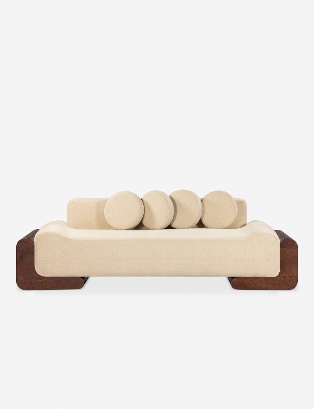 The Emela daybed's sculptural silhouette brings a modern edge to lounge seating. Soft lines and neutral tones ground the design—letting you curate a space that's artfully refined yet organic and inviting. Four disk cushions complete the look with a chic touch.