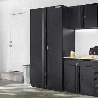 The Husky heavy-duty Welded Tall Cabinet is built strong and durable enough for any project. Built from rugged 20-Gauge welded steel, this cabinet can support up to 1370 lbs. of weight. There are 2 shelves and 1 adjustable drawer inside, and the shelf can support up to 350 lbs., and drawer can support up to 120 lbs. making this tough cabinet an ideal storage solution. Combine this cabinet with other pieces from the Husky heavy-duty Welded Cabinet Collection or other pieces from the Husky family of products for a garage storage solution that's built to last.
