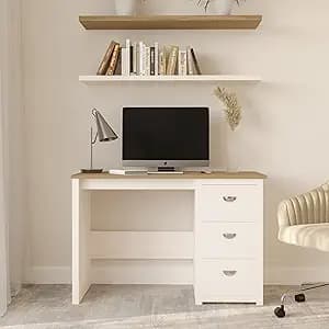 Computer Desk - Traditional Desk with Attached 3-Drawer File Cabinet - for Home Office, Bedroom, Computer, or Craft Table by Lavish Home (White)