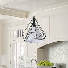 Industrial Metal Cage Pendant Light with Fabric Lampshade - Bed Bath & Beyond - 38393622