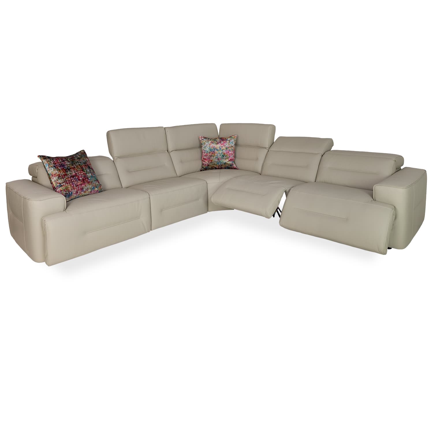 The Rosella Sectional, made in Italy, blends streamlined contemporary aesthetics and power motion technology in a design that is both stylish and comfortable. The smooth creame Giotto leather is accented by linear stitching on the seats and arms, highlighting the wide, cozy cushions. Three power motion seats allow you to adjust the seat and headrest to your preferred position. With its clean, structured design and plenty of room to sit back and relax, Rosella will become your favorite place for both resting and entertaining.