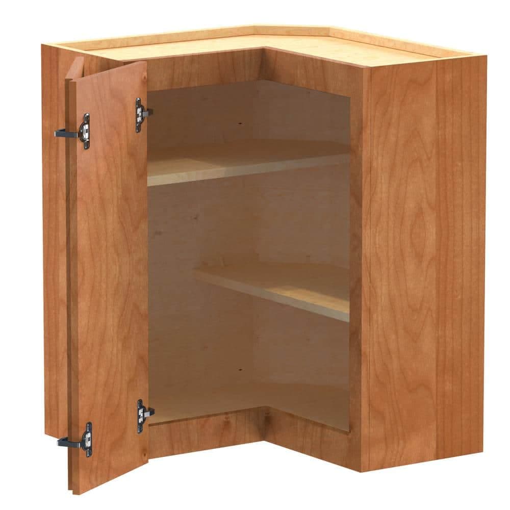Newport 24 in. W x 12 in. D x 30 in. H Assembled Plywood Corner Wall Kitchen Cabinet in Cinnamon with Shelves