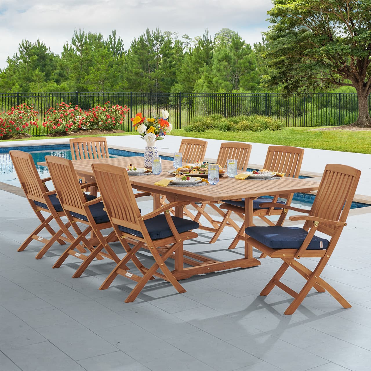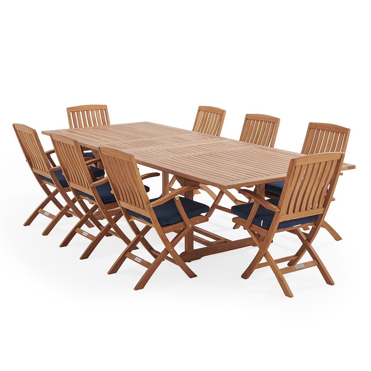 Westport Teak with Cushions 9 Piece Arm Dining Set + Bristol 87-118 x 47 in. Extension Table (Canvas Persimmon)