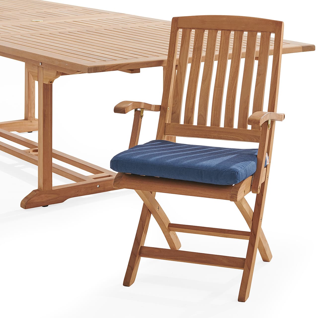 Elevate your outdoor dining experience with our Westport Dining collection, a traditional look in a renowned rich golden-brown color that adds warmth and substance to your outdoor space. Each item in this set is solid teak and has a fine, sanded finish. The table features a design, with an umbrella hole, which will accommodate any of our umbrellas. The teak is exclusively grown and made from recycled teak wood components. Making it one of the most durable materials we carry, teak is the only material with a natural resistance to water, insects, mold and mildew. Each piece is a combination of machine-made for precision and handmade with traditional construction for smooth and tight joinery. What's Included:1