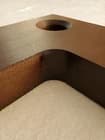 This product is an L-shaped corner shoe to be used with Lovesac sofas. Example layouts are in the images section. The shoe is made from Poplar wood, stained, and sealed. Each piece is slightly different in color and texture due to natural variations of the wood.