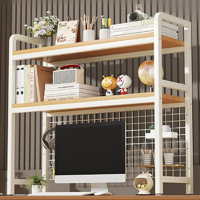 Buy Dawselod 2-Tier Desktop Hutch Bookshelf Metal Desk Shelf Dorm Bookcase for Computer Desk Countertop Storage Organizer Display Rack for Office Home (White, 53.1in): Desktop & Off-Surface Shelves - Amazon.com ✓ FREE DELIVERY possible on eligible purchases