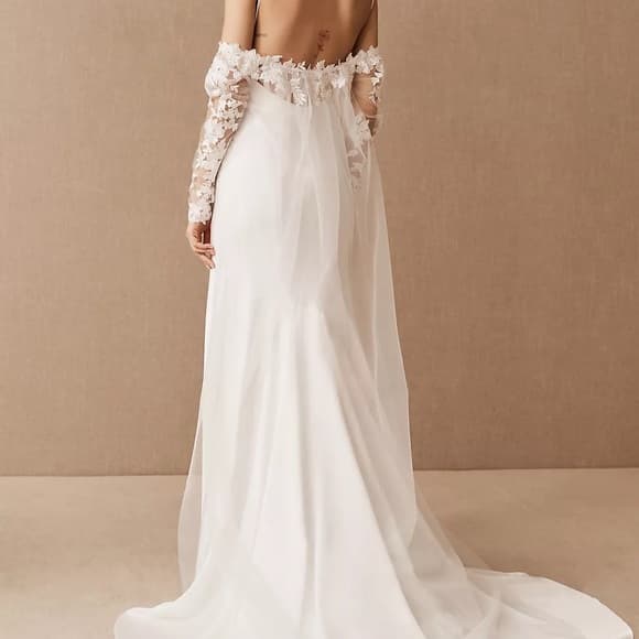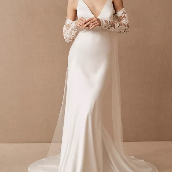 Beautiful addition to your bridal ensemble. The lace-sleeves give such an elegant touch on your wedding day and make your dress look completely different so you can have two looks on your wedding day just by removing the cape. It’s like new, no damage or stains at all.