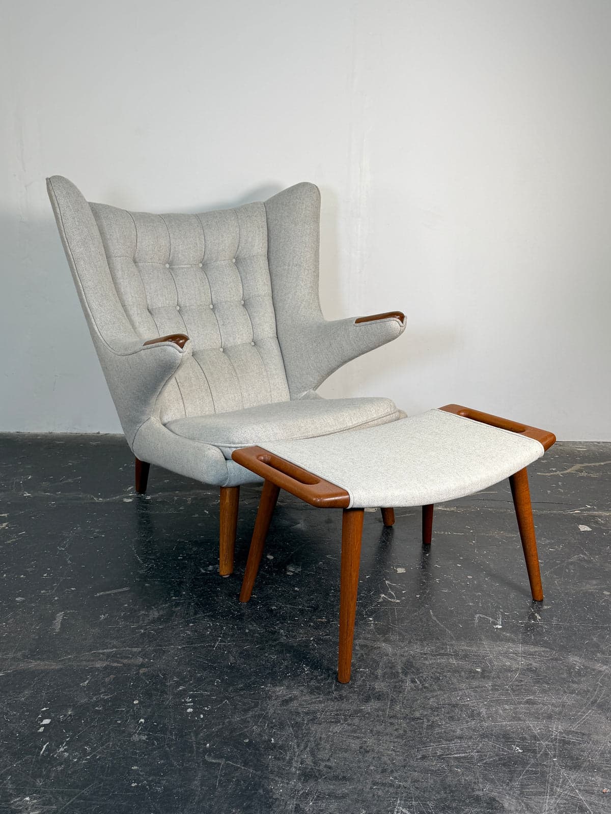 Hans Wegner Papa Bear Chair and Ottoman by AP Stolen circa 1950's