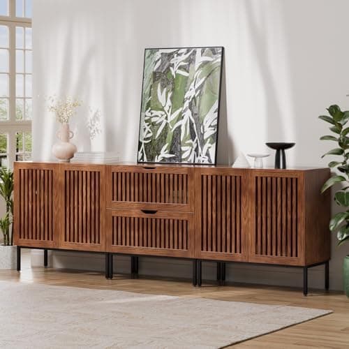 Buy BVIUNTWO Farmhouse Buffet Cabinet with Metal Base and Adjustable Shelf, Sideboard Coffee Bar with 4 Doors for Kitchen, Dining Room, Living Room, Brown: Storage Cabinets - Amazon.com ✓ FREE DELIVERY possible on eligible purchases