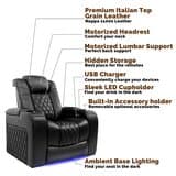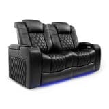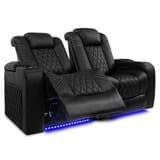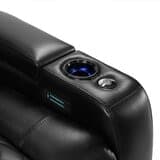A unique combination of style, comfort and luxury, the Tuscany Home Theatre Chair from Valencia ensures you get the most out of movie nights with your family and friends. With motorised recliner, headrest and lumbar support mechanisms, the Tuscany allows you to experience your home theatre in the utmost of comfort. This chair also features LED ambient base lighting and sleek LED cup-holders alongside deep hidden arm storage that will keep all your accessories safe and easy to access. Features: Italian top grain leather on all seating & armrest surfaces Hidden arm storage space Power recliner seat with power headrest & power lumbar support LED ambient base lighting for an immersive cinema experience LED backlit cup holders USB charging port Seat Height: 53.3cm Seat Width: 62.2cm Seat Depth: 55.9cm Wall Clearance: 10cm Chair Depth When Fully Reclined: 175.3cm Supports up to: 136kg Materials: Cover: Top grain leather with PU sides and back Cushions: Foam Frame: Plywood and Steel Assembly: Includes full white glove delivery and assembly, including removal of packaging. Please check both your access and product dimensions to ensure furniture will fit through doors and hallways on delivery. For product dimensions, see ‘Specifications’ below