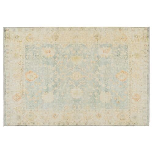 The Demi collection brings vintage inspiration to life with ornate, worldly designs and a timeless distress effect. The Demi area rug boasts a Persian-inspired floral pattern, short fringe and detail-rich border in light blue, pastel green, yellow, orange, and cream colorway. This zero-pile rug is printed on cotton, polyester, and soft chenille for a flat, durable finish. Perfect for high and low trafficked areas of the home, this rug delights in bedrooms, halls, living areas, dining rooms, and entryways.