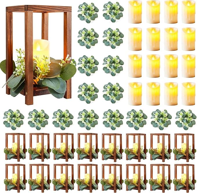 Buy Neoflavie 48 Pcs/16 Set Wedding Lantern Centerpiece for Table-Wooden Candle Lantern Bulk Includes 16 Farmhouse Wooden Candle Holder 16 Flameless LED Candles 16 Eucalyptus Leaves Wreath for Decoration: Decorative Candle Lanterns - Amazon.com ✓ FREE DELIVERY possible on eligible purchases