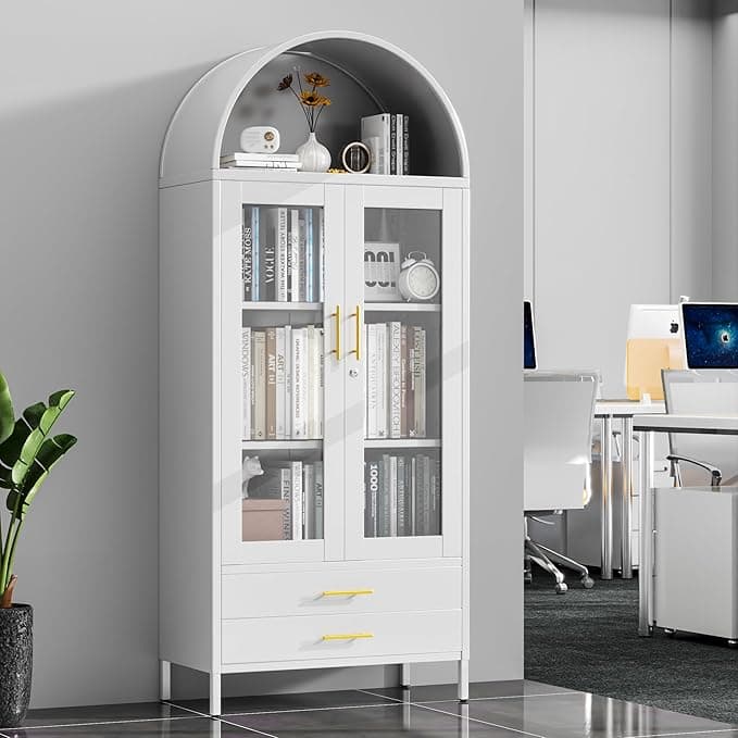 Buy SUXXAN 72.8" Tall Metal Arched Kitchen Pantry, Modern Storage Cabinets with 2 Glass Door and 2 Drawer, Versatile Cupboard for Kitchen, Dining Room, Bathroom,Assembly Required (White): Storage Cabinets - Amazon.com ✓ FREE DELIVERY possible on eligible purchases