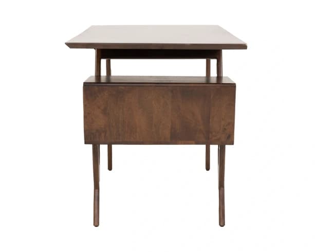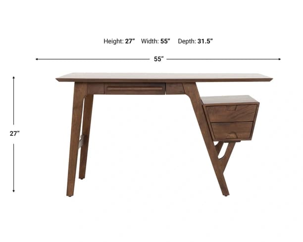 The Jaipur Knoll Three-Drawer Desk offers a functional and stylish workspace with ample room for working, creating, and organizing. Crafted from sustainably sourced, richly grained solid mango wood, this desk brings both durability and natural beauty to your home office. It features two drawers on the right side and a long drawer, providing plenty of storage space to keep your essentials neatly tucked away. The clean, modern design makes this desk a versatile piece that complements various interior styles while offering practical solutions for everyday use.