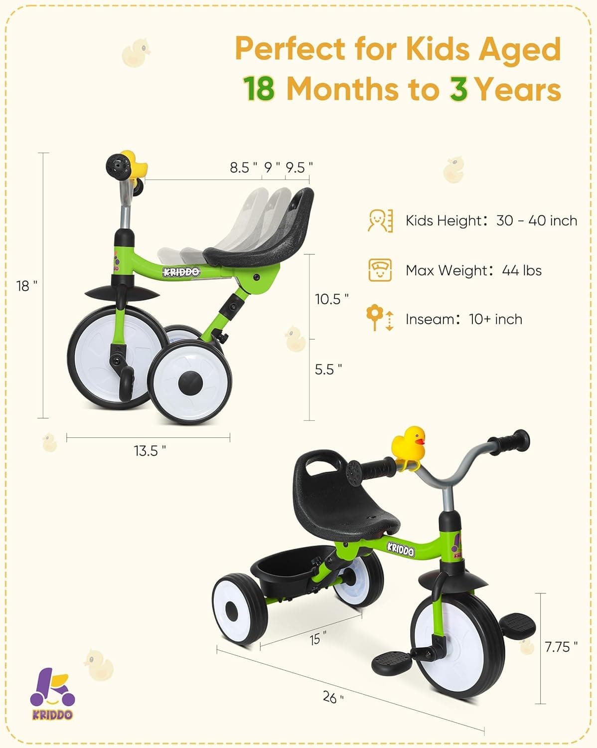 This foldable baby tricycle for 18–36 months offers safe, fun riding with an adjustable seat, stable frame, and playful extras like a duck and flag. Perfect for toddlers learning.