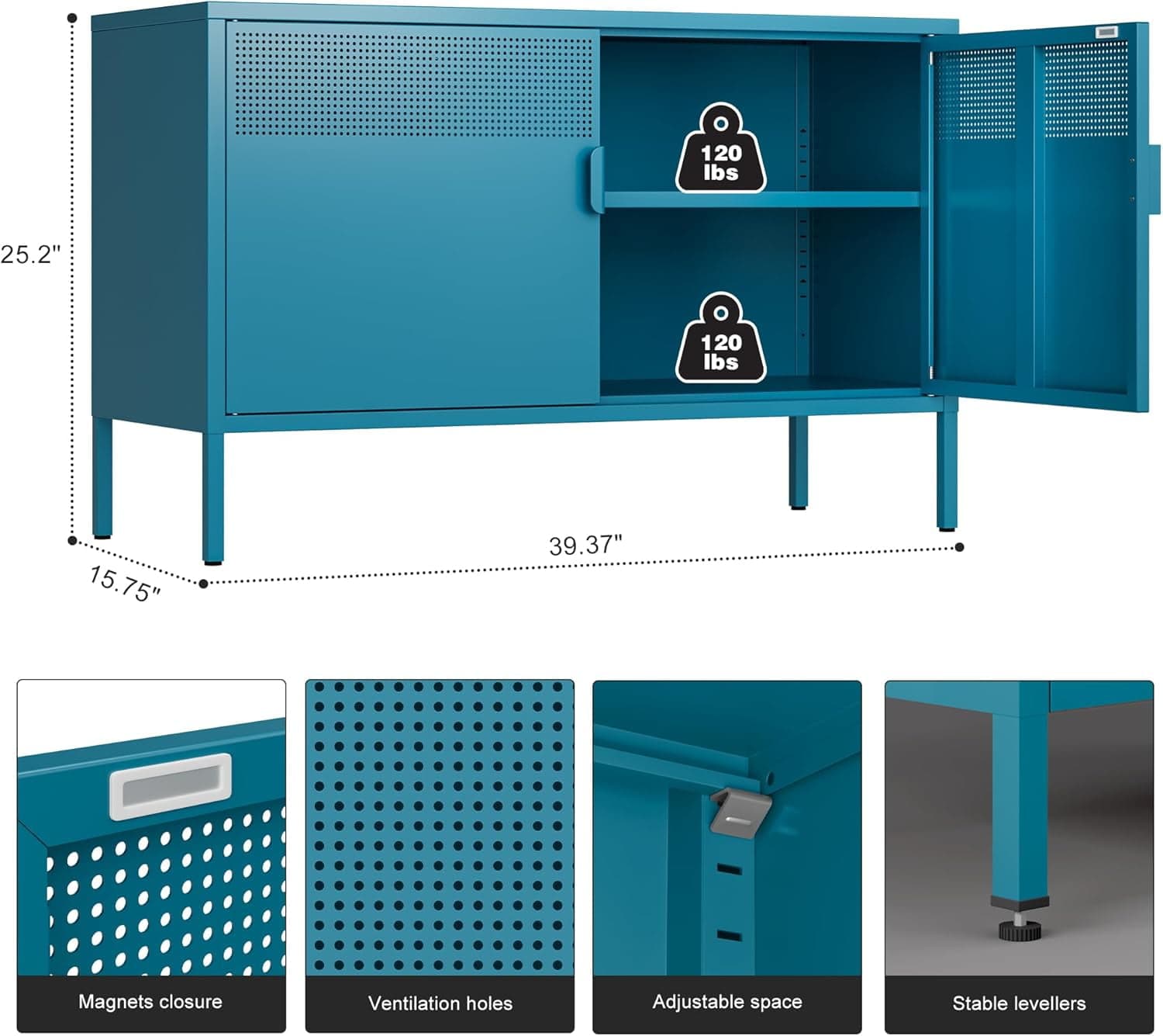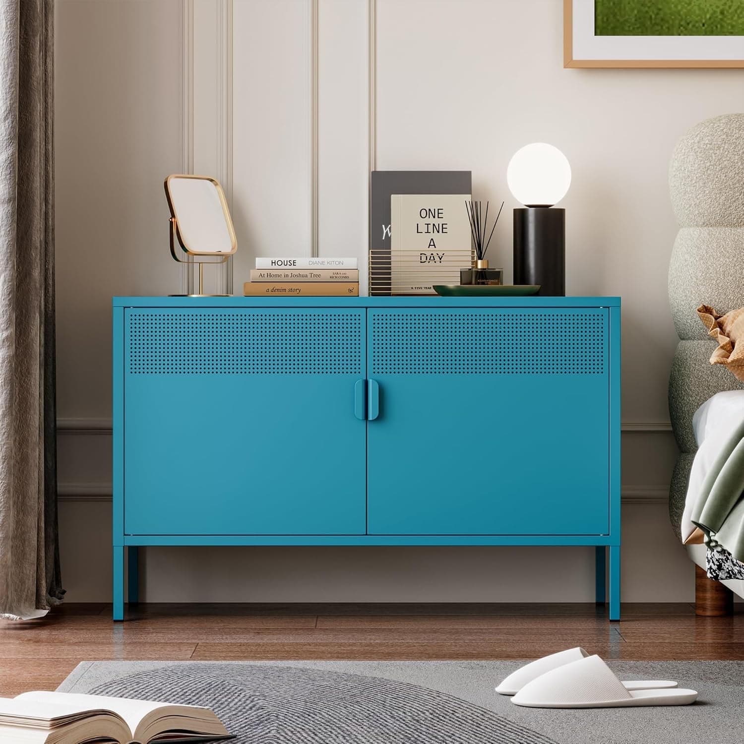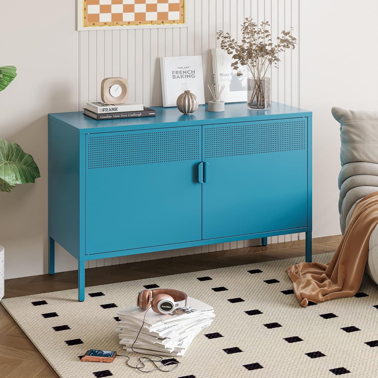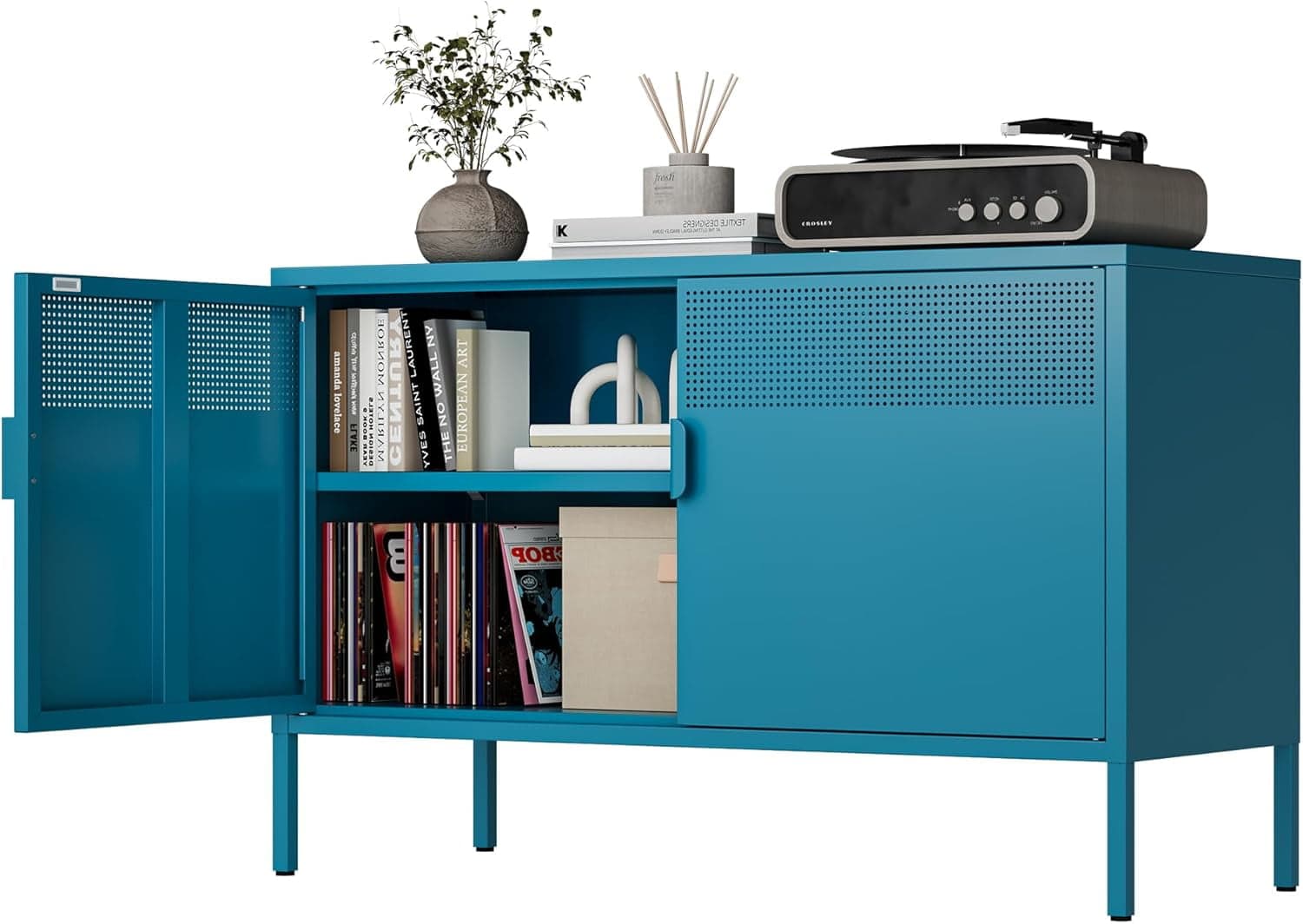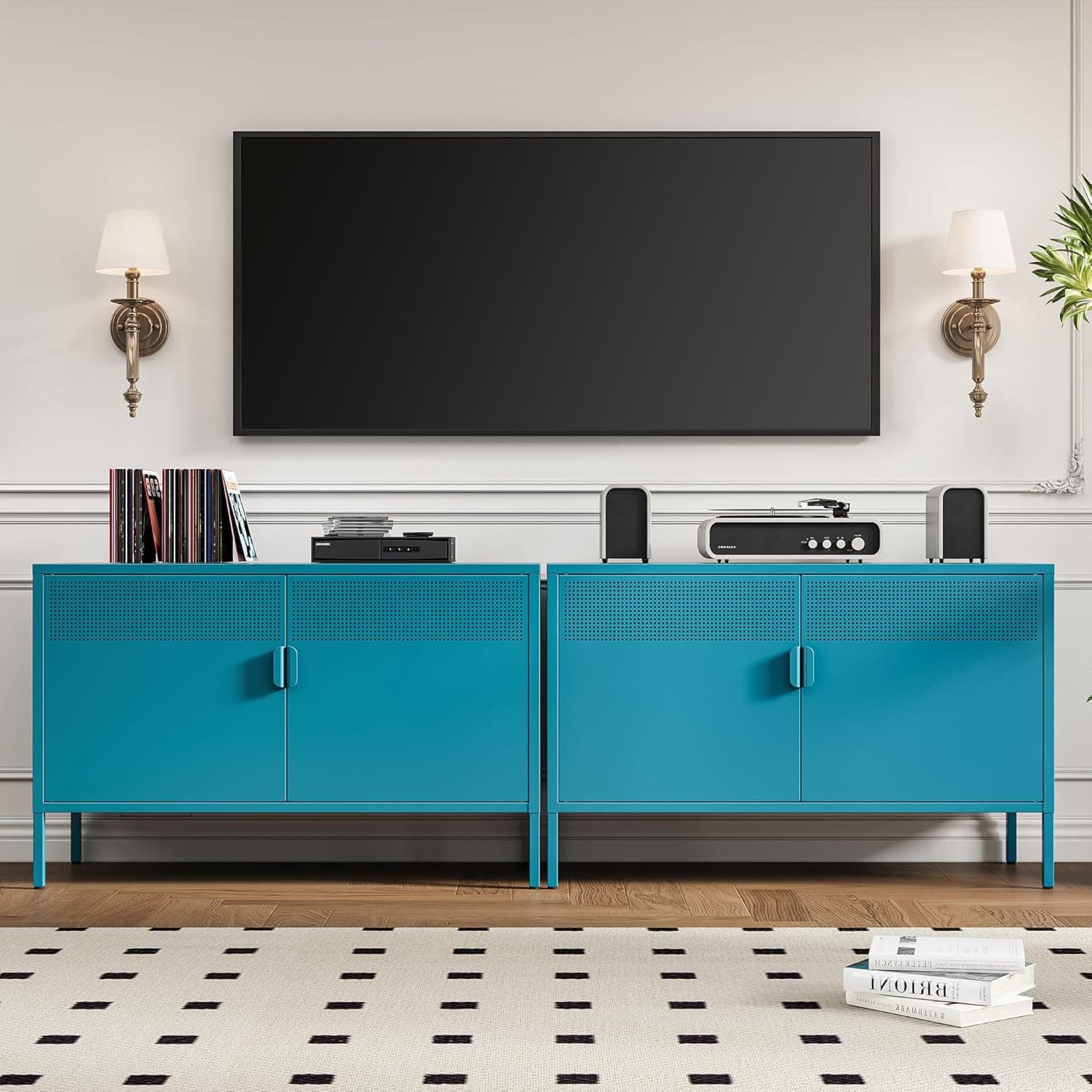 Buy CHSHIN 25"H Modern Metal Locker Storage Cabinet with 2 Doors for Home & Office,2-Tier Tv Stand,Blue at Walmart.com