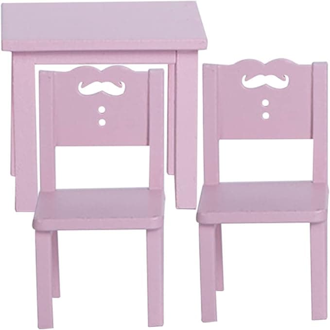 Features - Material: Wood - Size(miniature table): 6.70X3.80X3.50cm/2.63X1.49X1.38in - Size(miniature chair): 5.70X5.00X5.00cm/2.24X1.97X1.97in Package Including 1 x Miniature Table; 2 x Miniature Chairs;