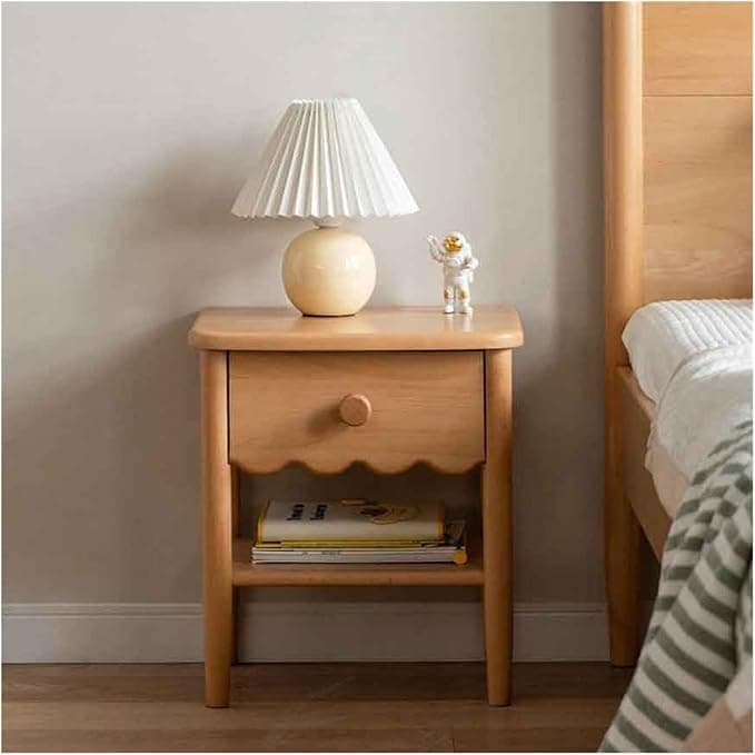 Material: Beech Size:403545cm/15.7513.7817.71in Colour: as shown. Not only can be used as a bedside table, but also as a storage cabinet or sofa coffee table.
