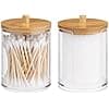 Keep your cotton pads, cotton swabs and other smaller items neatly stored where you need them with these smart, stylish containers. Use the two holders stacked together vertically, or conveniently placed apart in different locations on your bedside table, desk or bathroom cabinet. Each jar features its own lid, made of genuine bamboo, for a smart storage solution that looks great in your bathroom or bedroom. One of the two jars offers quick access to your items via a handy U-shaped opening. These clear plastic accessory organizers are made to last. They are nice and light, while also allowing you to see exactly what's stored inside and what might need replenishing.