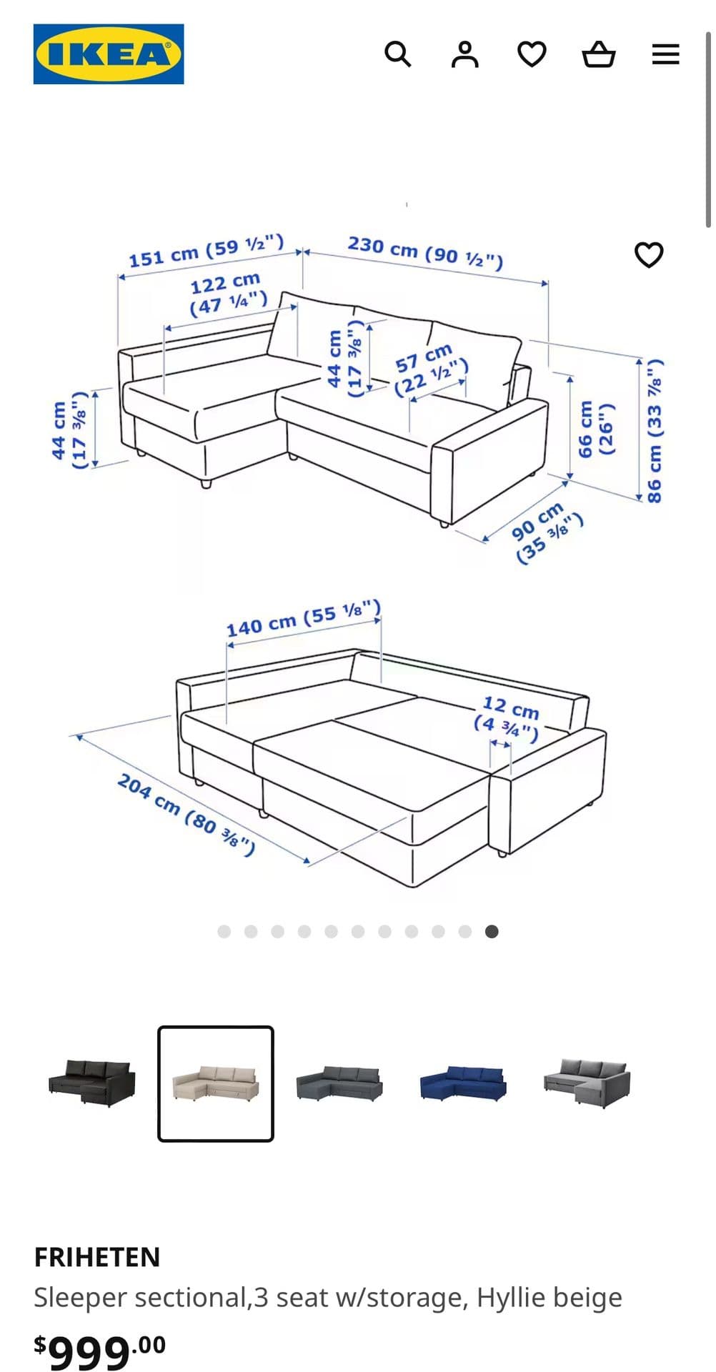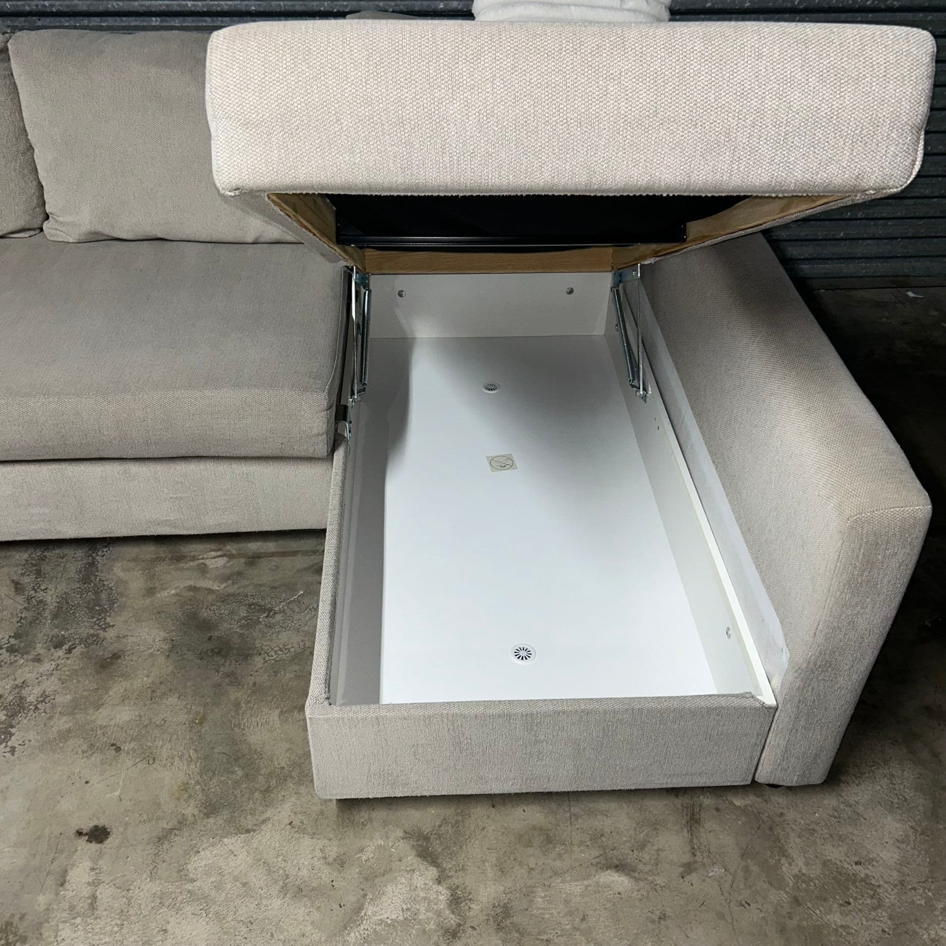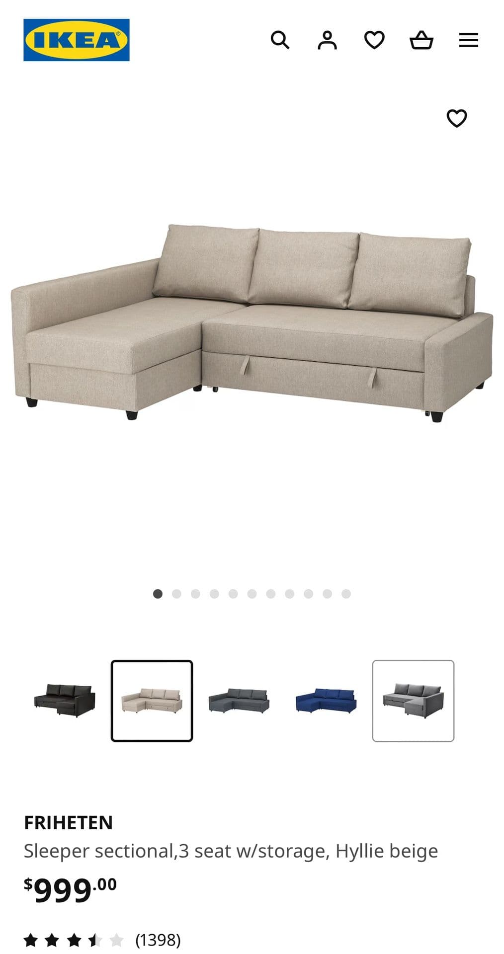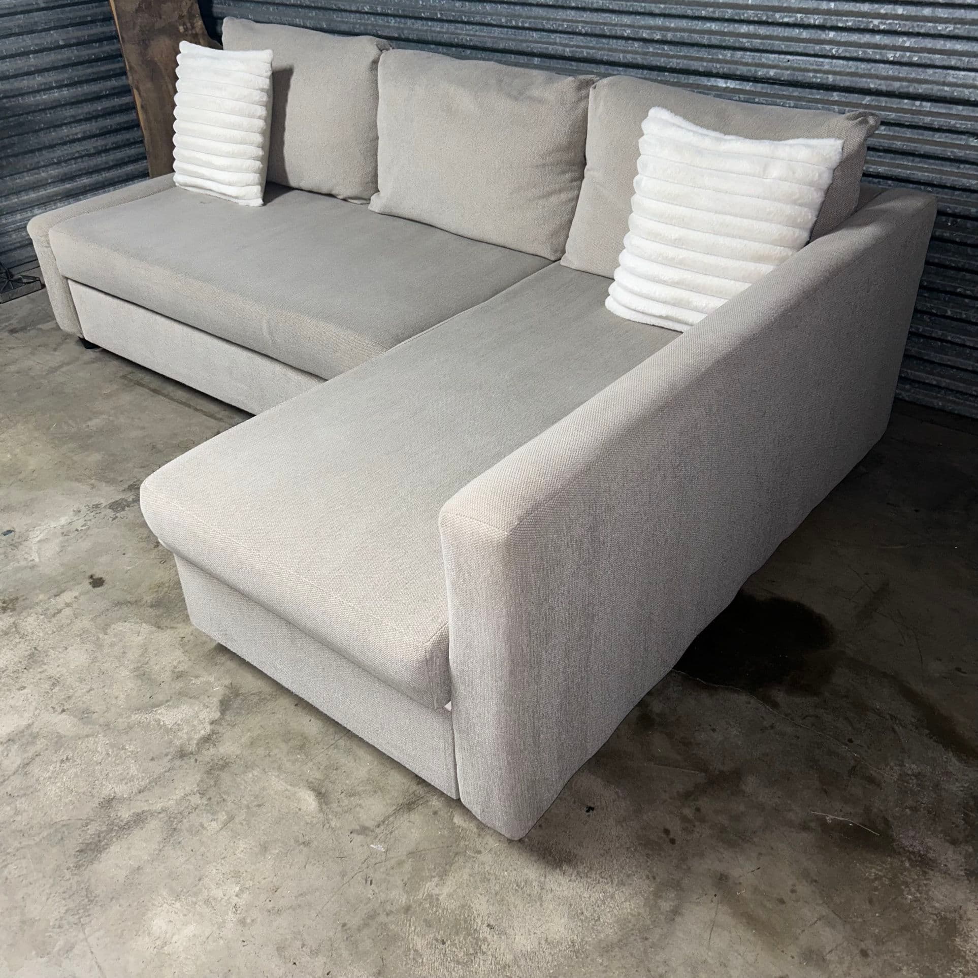 Reconditioned/Certified, Beige IKEA Friheten sleeper sofa with storage Smoke & pet free. It has a spot on the seat (see photos) overall in good condition. Couch has been cleaned and ready for a new home. White pillows are not included. Pick up from 77099 or I can deliver locally for $50. First come first serve. NO holds. Cash or Zelle only.
