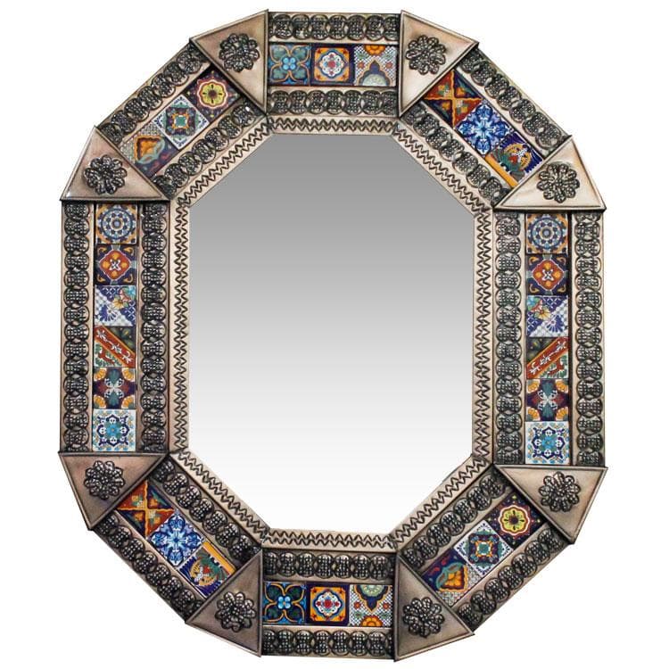 Small Octagonal Talavera Tile Mirror - Oxidized Finish