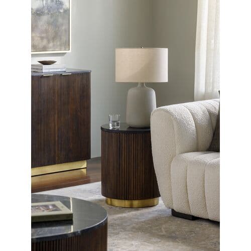 Ferrus Fluted 18" Round Marble Top End Table - Black