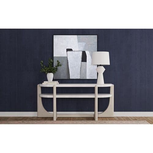 The Anna Table Lamp stands out with its contemporary style, featuring a lamp body with a geometric silhouette that tapers and flares in a striking hourglass shape. This modern design is balanced by the softness of a classic drum shade, creating a harmonious blend of form and function. The finish of the lamp's body ensures that it provides a subtle statement in any space, embodying a sleek and sophisticated aesthetic.