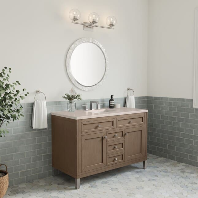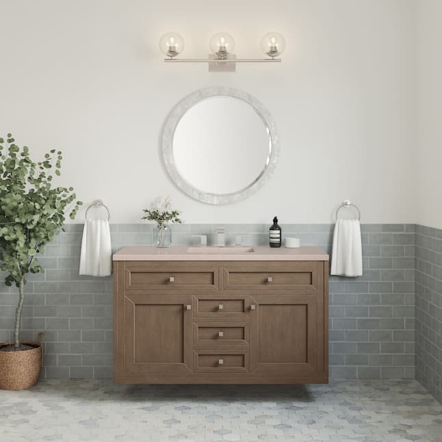 Shop James Martin Vanities Whitewashed Walnut 48-in Whitewashed Walnut Undermount Single Sink Bathroom Vanity with Eternal Marfil Quartz Top in the Bathroom Vanities with Tops department at Lowe's.com. The Chicago series is an updated take on the mid-century modern style. Clean lines and ample storage make these vanities a welcome addition to your bathroom.