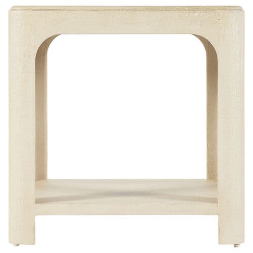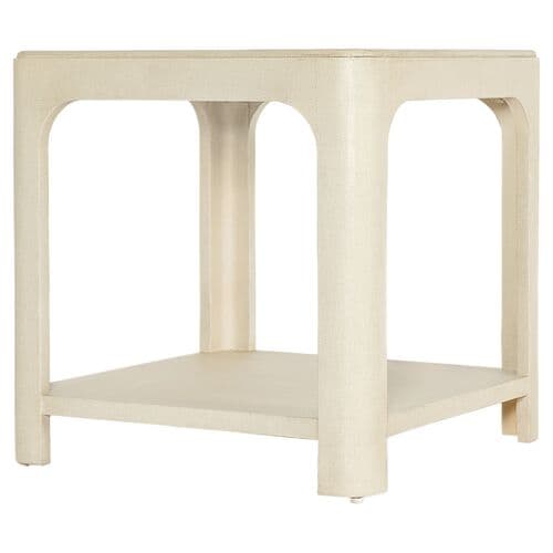 The Archives Raffia End Table combines natural textures with elegant design. Wrapped in raffia and featuring woven-cane details, this square-shaped table offers a refined finish that adds depth and character. Complete with a fixed shelf for additional storage, this end table is perfect for complementing living spaces that blend casual comfort with structured elegance, making it a versatile piece for any room.