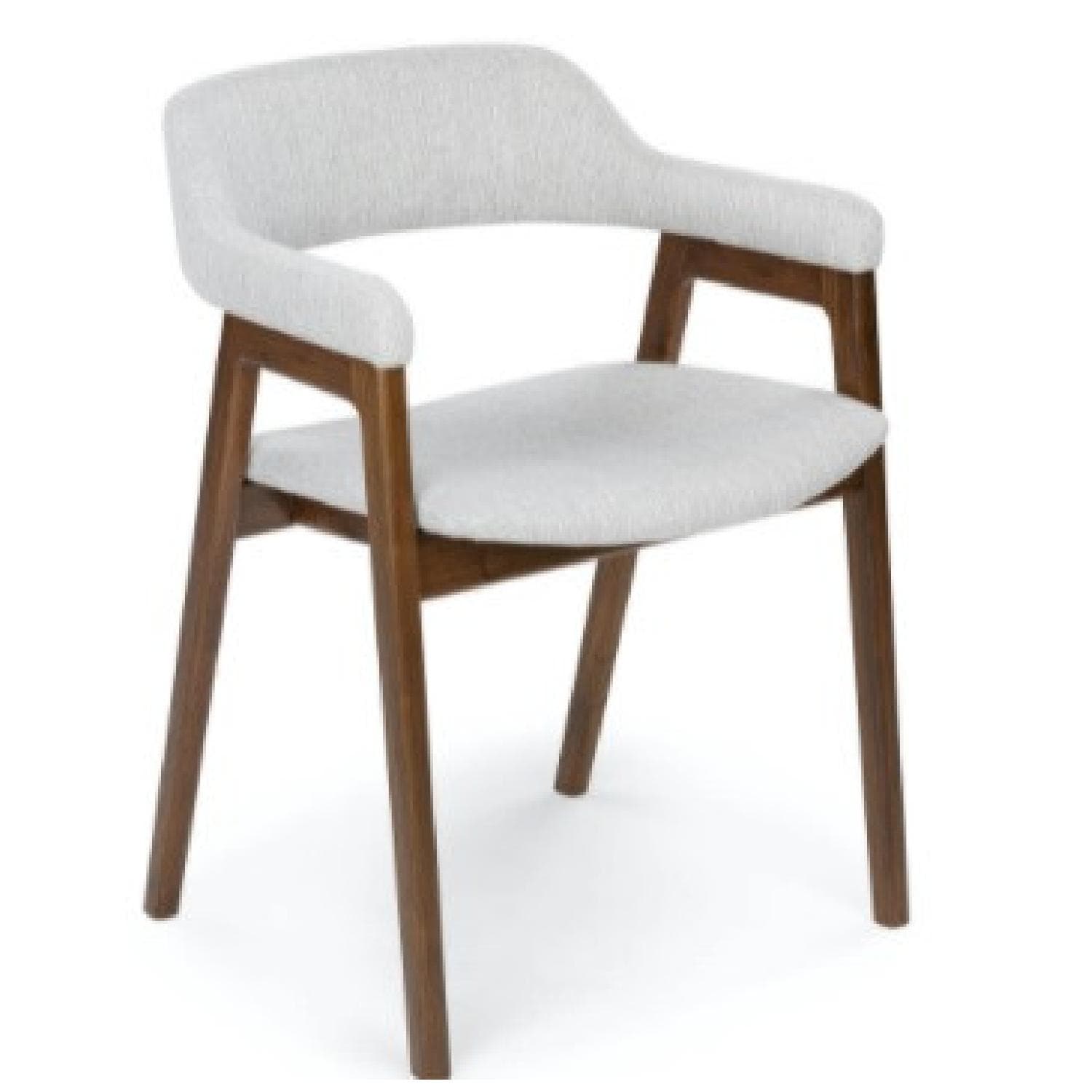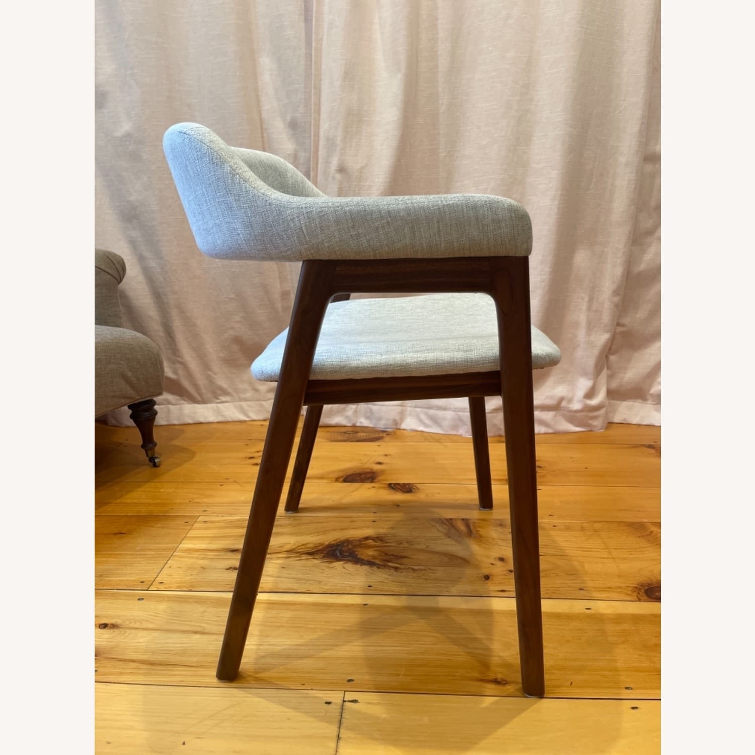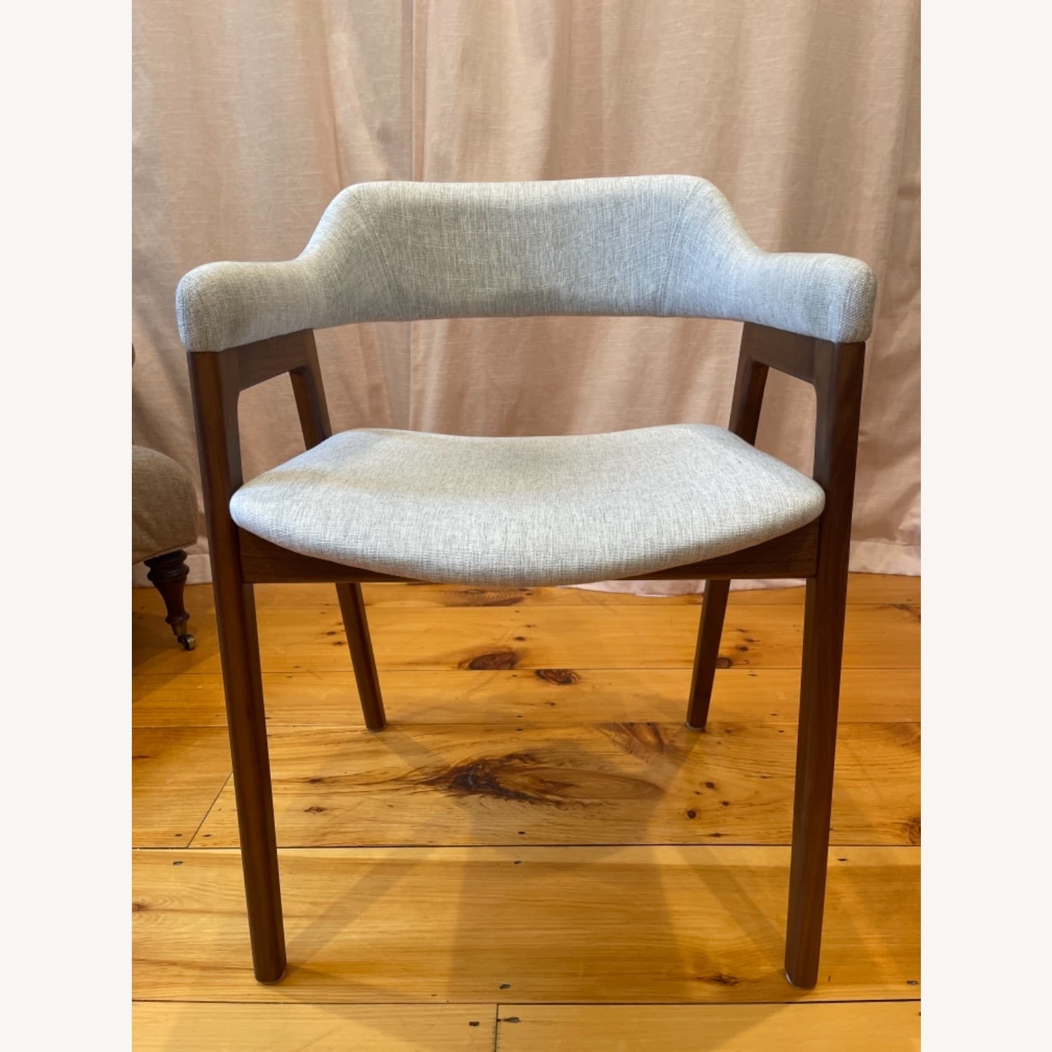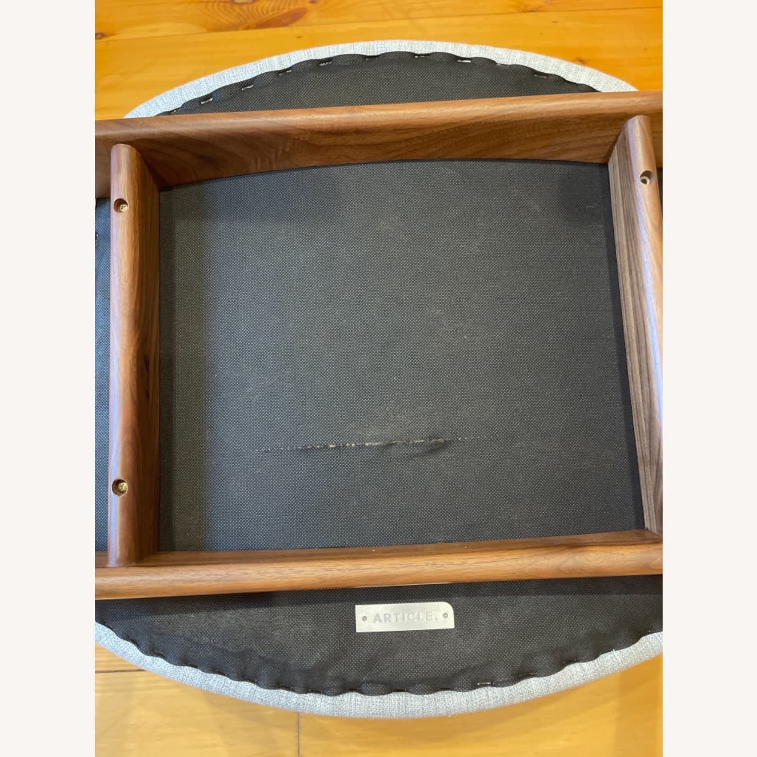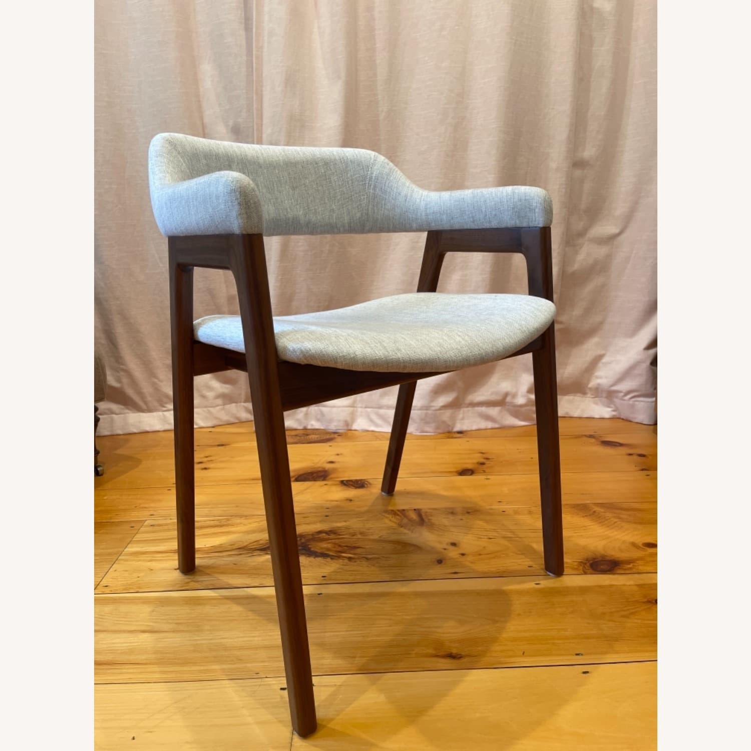 Purchased in April 2020 as a work from home chair to a secondary home office (so used about 50%). please see photo as there is a cut in the black underside (unseen) lining of the chair. Sadly, this is how it was delivered to us by Article, but due to limited inventory, we accepted the flaw Description from Article, manufacturer: “ A classically mid-century shape, but updated with hardy materials and constructed from solid wood. The Article makeover, if you will. The Savis chair’s curved back and ample arms make for comfortable tableside conversation. Please note: This design is not commercially rated and is intended for home-office use only.” Features - Solid Walnut frame - Foam-padded seat and back - Handcrafted items may vary slightly in size - Suitable for residential use only - Assembly not required