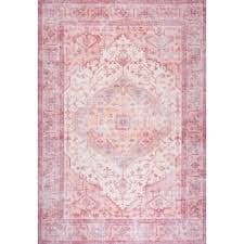 JONATHAN Y WASHABLE Alacati Ogee Medallion 5 X 8 (ft) Red/Orange/Cream Indoor Border Bohemian/Eclectic Machine Washable Area Rug WSH103A-5 at Lowes.com