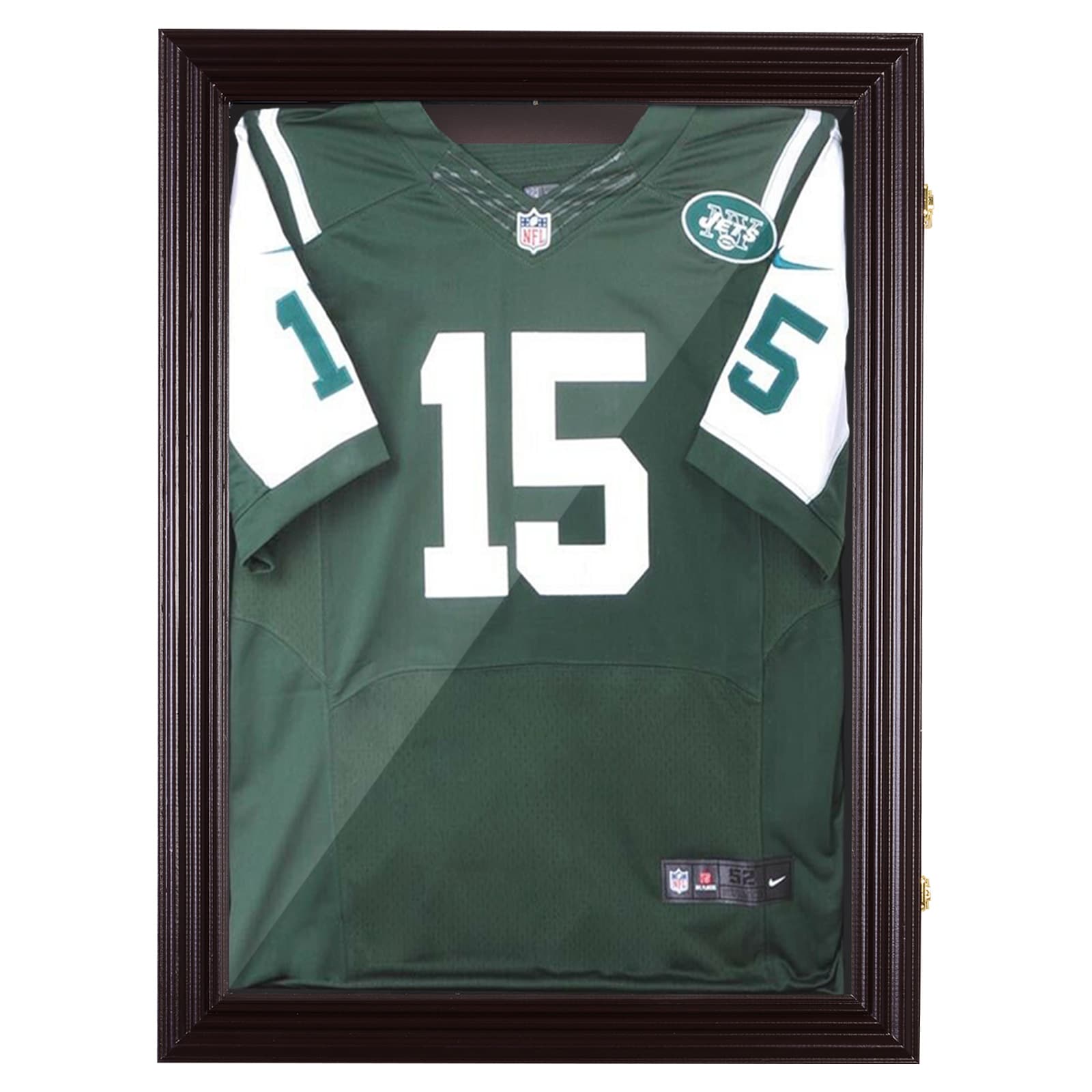 HomCom's Jersey Frame Display Case is perfect for showcasing your treasured sports memorabilia. Its solid hardwood construction offers a sophisticated look. The acrylic door features two magnets and a lockable latch to keep dust out and protect against UV rays. An interior hanger and brass hooks on the back ensure easy display of your favorite items right away.
