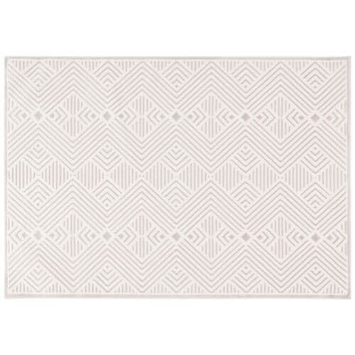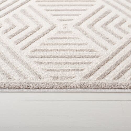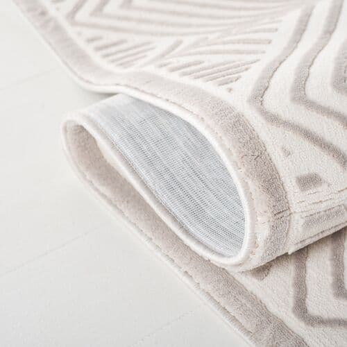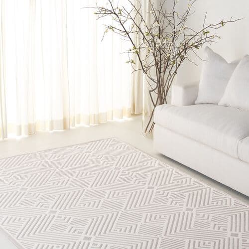 Elevate your home with the luxurious touch of our Modern Ivory Area Rug, a testament to sophistication and contemporary design. Invitingly plush, with a medium rectangle profile measuring 5 feet by 7 feet and a dense 1/2 inch pile height, this piece is the epitome of foot-cradling comfort. Expertly power-loomed in Turkey, this area rug exudes durability and precision, showcasing an exquisite geometric pattern that commands attention. Its intricate maze-like motif interspersed with clean, angular lines will be the focal point of any room, harmoniously blending with both minimalistic and elaborate interiors. Crafted from premium polyester, our area rug offers an irresistibly soft surface with the added bonus of easy maintenance, ensuring it remains an elegant centerpiece for the discerning homeowner. The modern style, embodied by its crisp ivory palette, adds a serene and chic vibe that complements a wide range of color schemes and decor themes. Bring home a piece that fuses timeless grace with modern sensibilities, making the Modern Ivory Area Rug an essential addition to any refined living space.