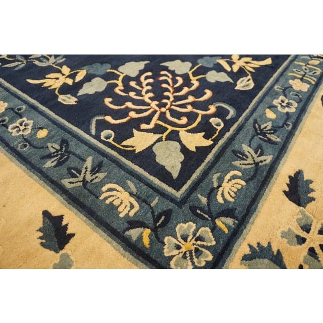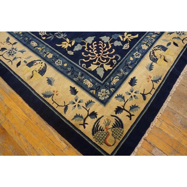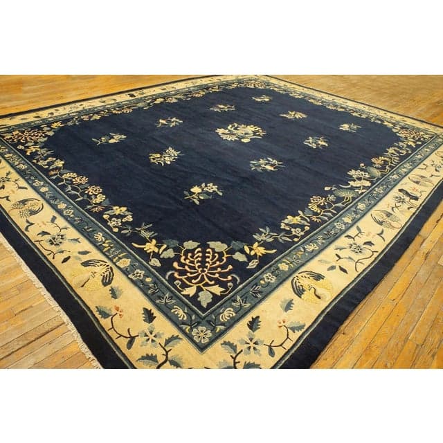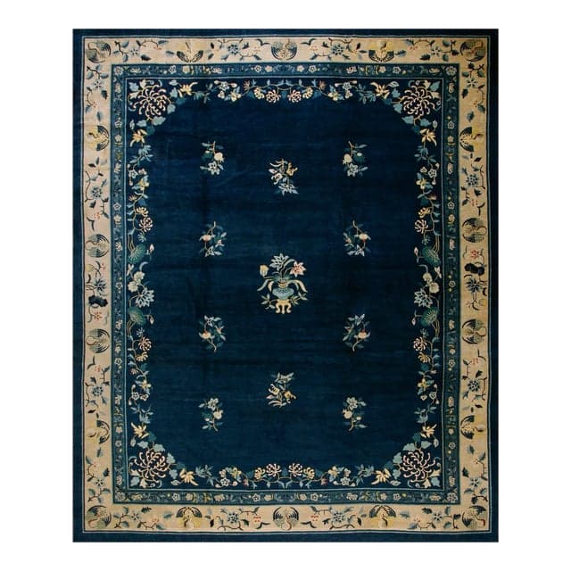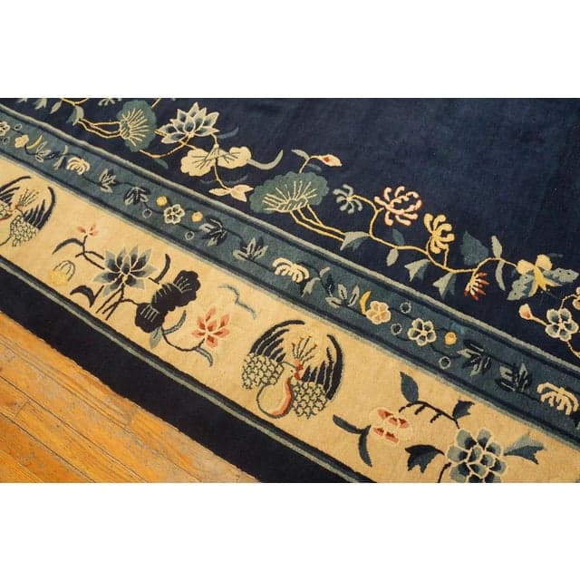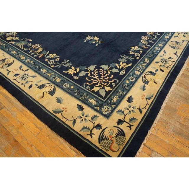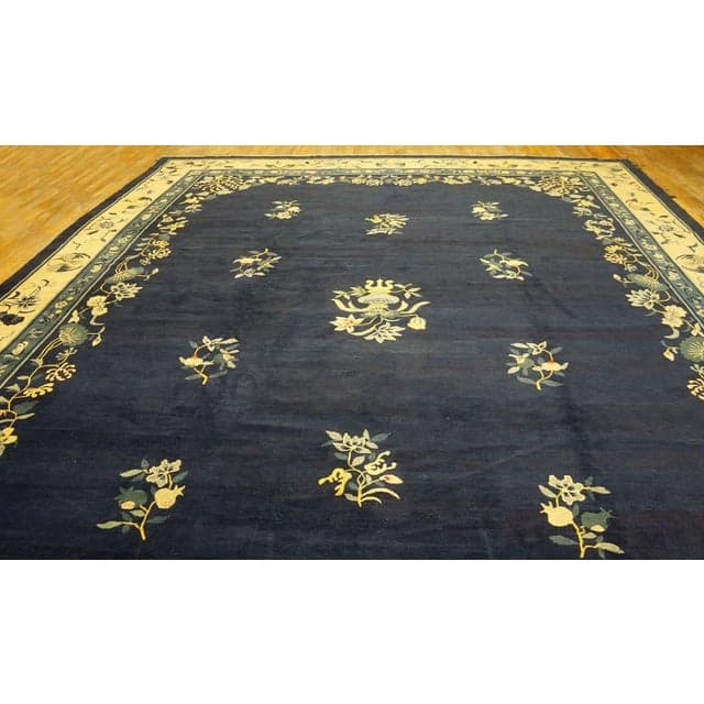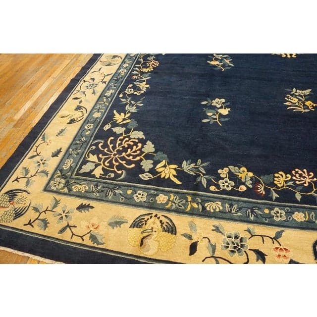 Antique Chinese Peking Rug with a blue background. Measures: 11' 9'' X 14' 3''.