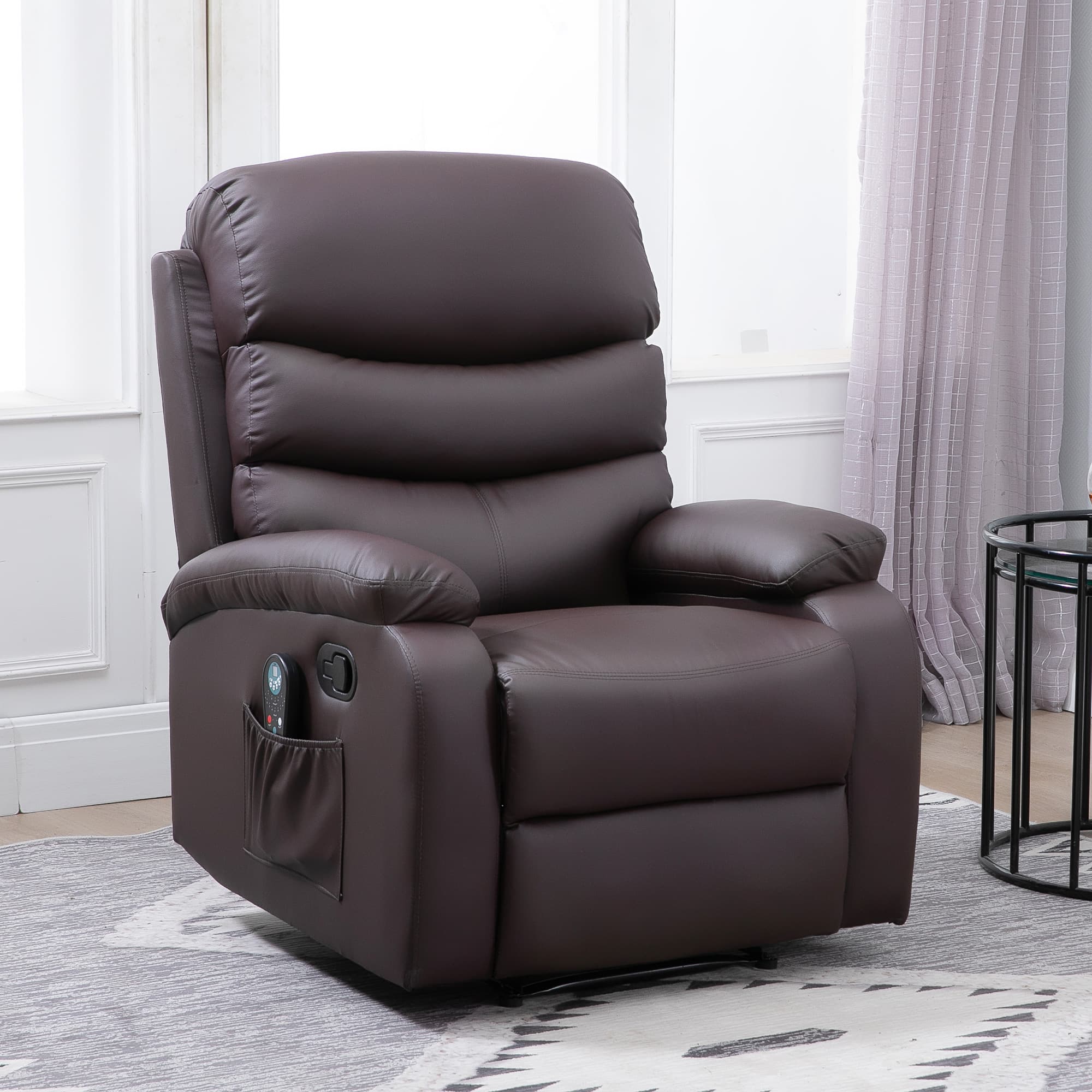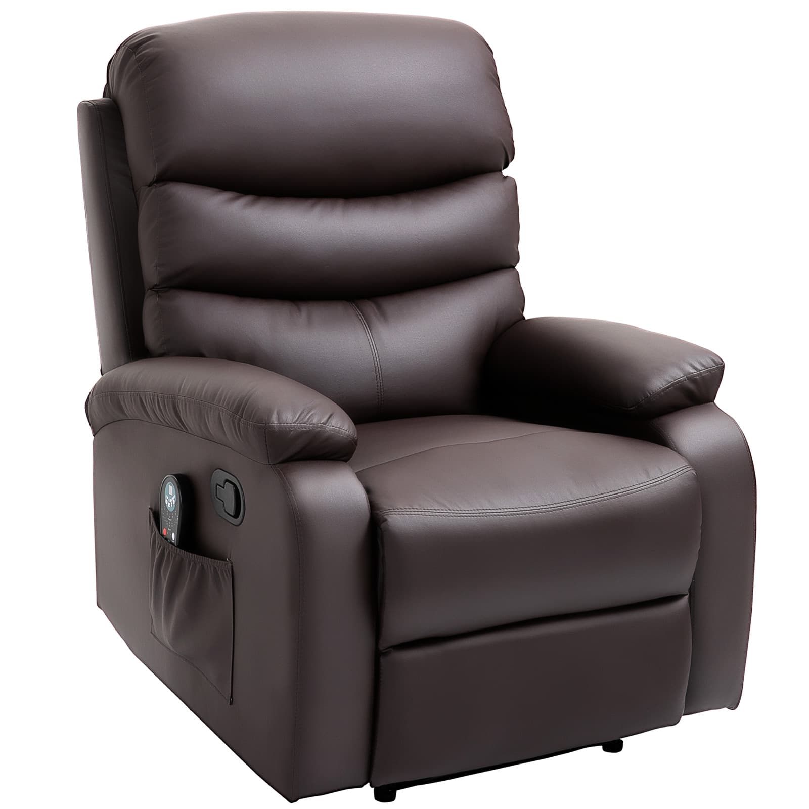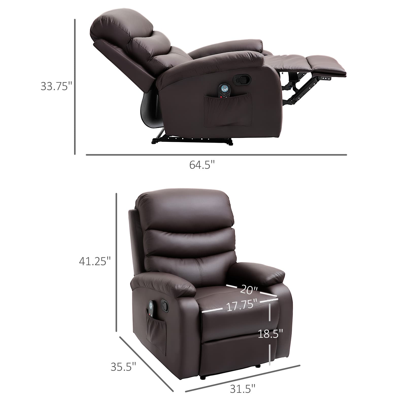 HOMCOM Manual Heated Massage Recliner, Padding Single Sofa with Heat and Remote Control, 8 Massaging Points, Storage Pockets, PU Leather, Brown