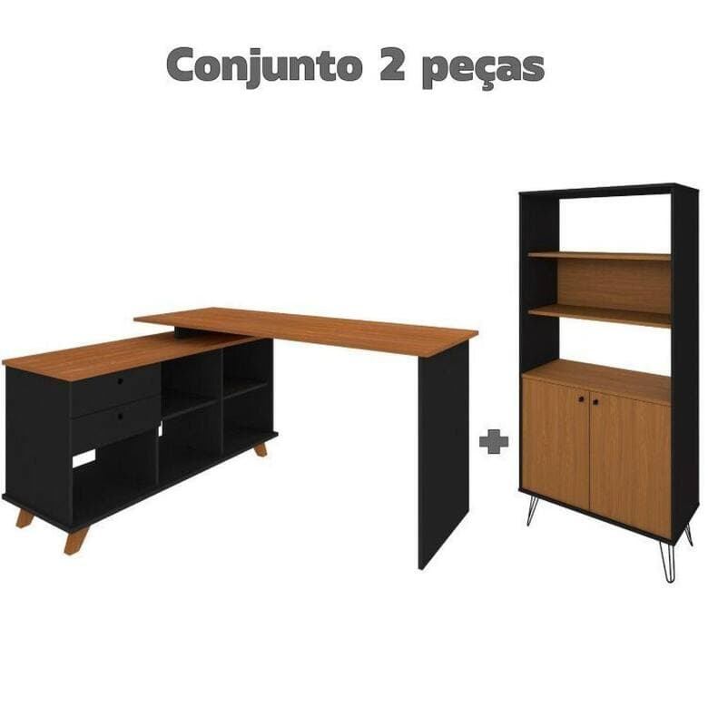 Conjunto Home Office 2 Peças Escrivaninha Gold com Estante Hit Artany Freijó/Preto