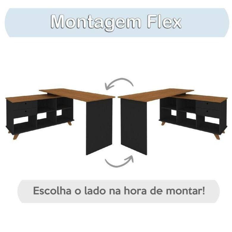 Transforme seu home office, escritório ou quarto, em um espaço de estudos ou trabalho lindo e funcional! Uma escrivaninha em L com um amplo tampo, diversos nichos e 2 gavetas, garante a praticidade, ergonomia e conforto que seu trabalho precisa! A tonalidade do amadeirado freijó levemente avermelhado torna o ambiente aconchegante e agradável, enquanto a combinação com o preto e elementos metálicos fazem o espaço muito moderno e sofisticado! Além da beleza, os móveis são de qualidade premium: estrutura robusta e estável de MDP de 18mm, proveniente de madeira reflorestada, com acabamento BP, que é mais resistente ao atrito e umidade, além de garantir longa durabilidade.