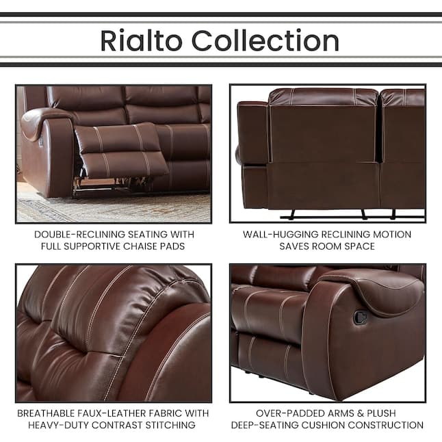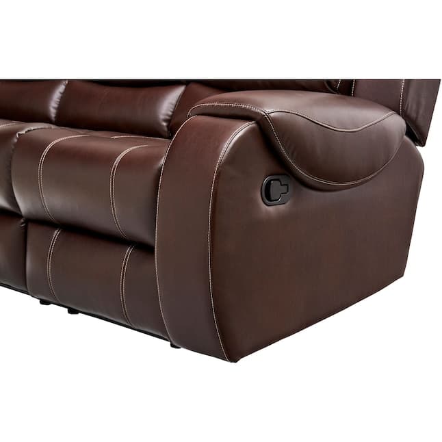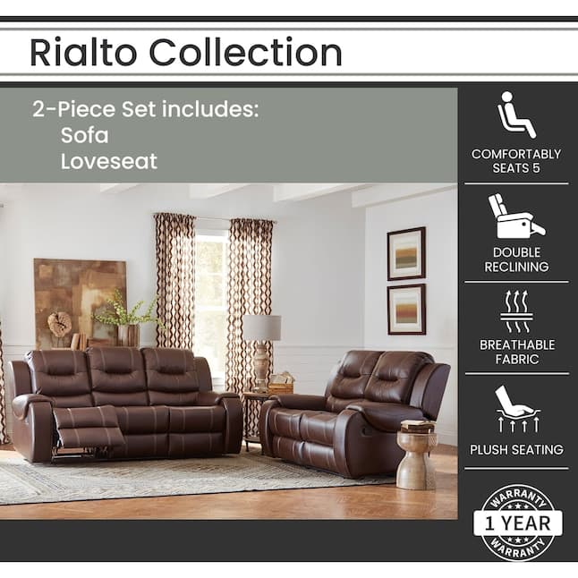 Shop Hanover Rustic 2 -Piece Faux leather Brown Living Room Set in the Living Room Sets department at Lowe's.com. Selected from the best raw material for tactile quality, strength, character, and sheen, the Telluride collection is dressed in exceptionally soft naturally milled leather that effortlessly forms to the shape of your body. The charismatic appeal of this collection is complimented by distinctive luggage stitching throughout a supportive pad over chaise design, while plush padded arms allow for the perfect spot to rest a book, remote, or purely lay an arm. It's simple sophistication ensures a timeless style, and coupled with the durability of high quality leather and a neutral hue this recliner is sure to last for years to come.
