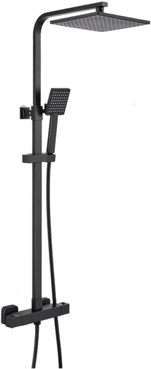 Bathroom Matte Black Thermostatic Shower Wall Mounted, Dual Function Bathroom Constant Temperature Faucet Combo Set Shower Head (Color : Black)