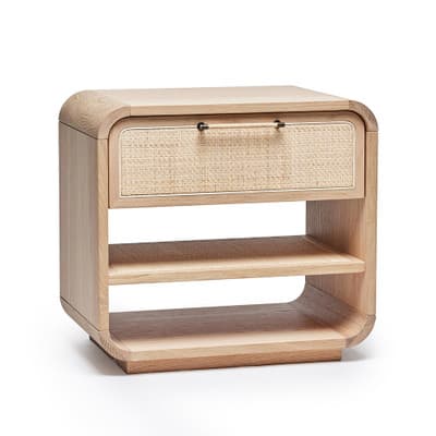 Interlude Home, an iconic modern home collection, designs and curates exclusive furniture, home accessories, lighting and wall decor. Partners Carl Philips and Wendy King Philips find inspiration in fashion, which provides a prolific foundation from which to translate trends. Creating proprietary pieces with the world's most exceptional artisans and craftsmen, Interlude offers supremely stylish accents that are of-the-moment, yet classic enough to work with any aesthetic. Enjoy the Marsh Bedside Chest in your home today! With the pairing of saddle-finished oak and blonde rattan, the Marsh Bedside Chest and its midcentury vibes make for an easy breezy addition. This item is made of solid wood. Item will not be exactly as pictured, subtle deviations in hue after finishing can be expected as a result of natural variations in coloration of the base material.