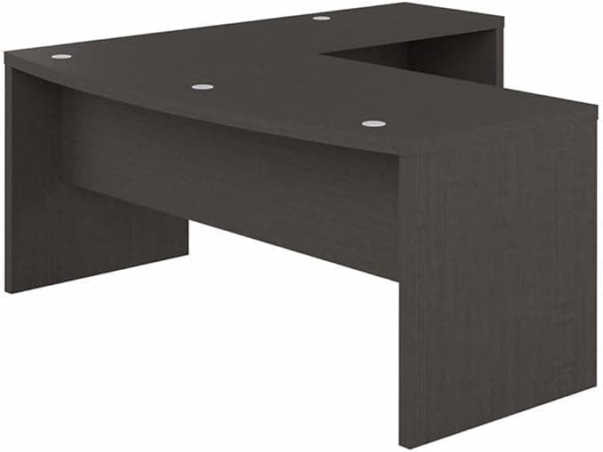 Celebrate your unique style and personality with Bush Furniture Echo Collection Bow Front Corner Desk! Transform your professional or home office into an attractive work haven with these features: Sturdy Build: 200lb weight capacity supports multiple monitors and equipment. Fits Your Space: adapts to virtually any space with return attaching to either side. Commercial Quality: North American made with globally sourced materials. Rigorously Tested: for stain and scratch resistance, durability, tip stability and more.