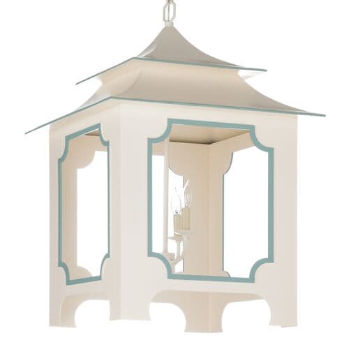 Tole Pagoda Lantern - Cream/Teal - Chelsea House - White