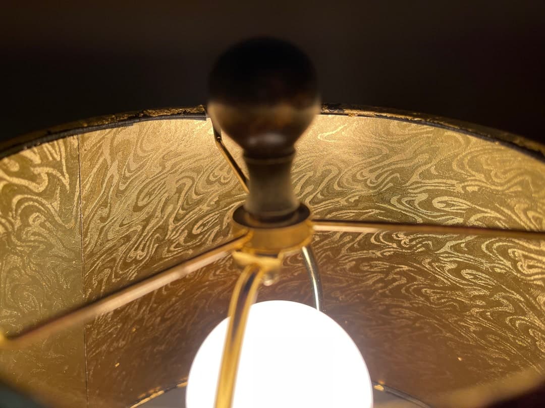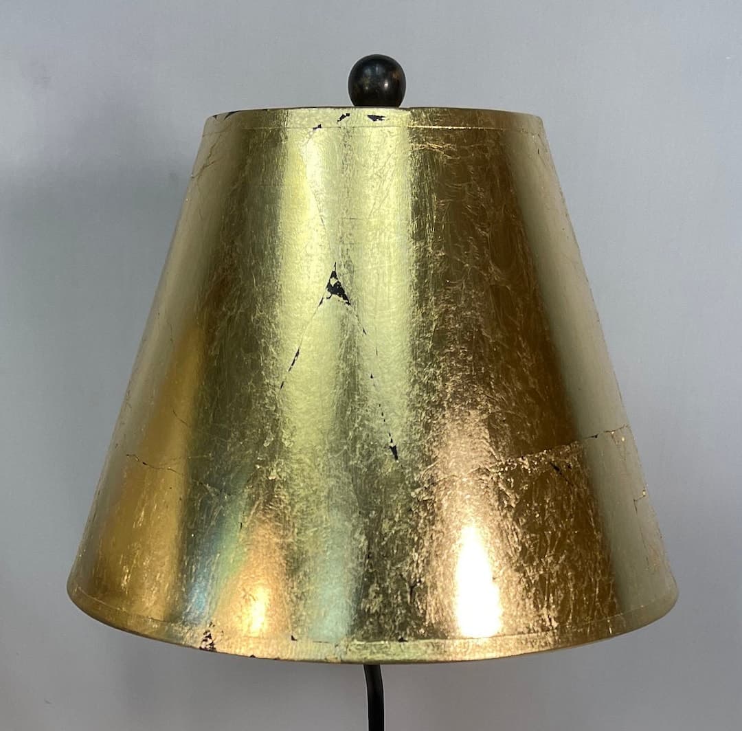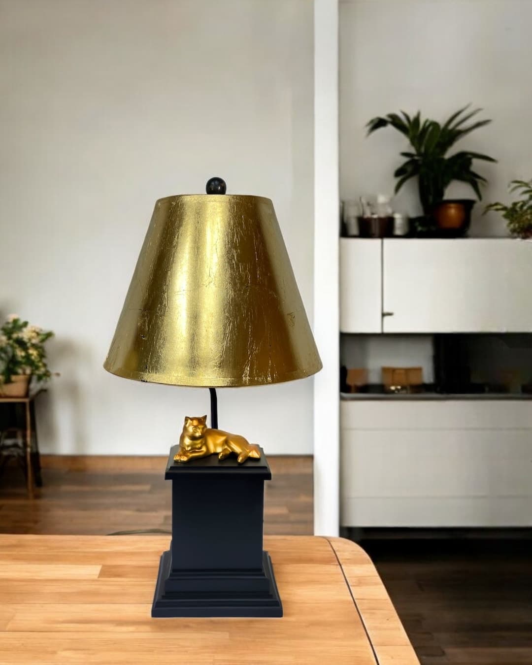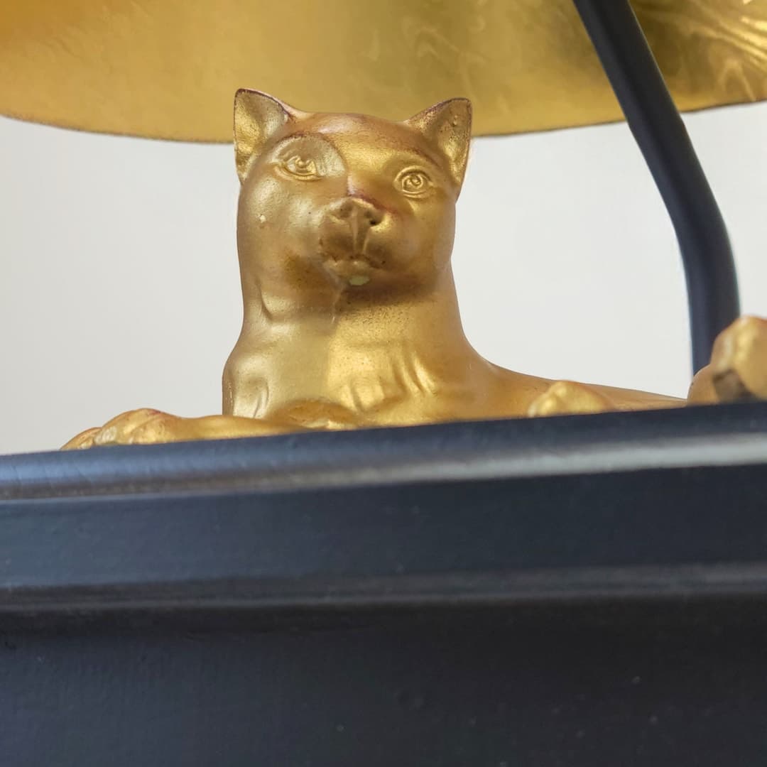 Cat Figurine Table Lamp W/custom Gold Leaf Empire Lampshade and Gold Ponyhair Lined Interior