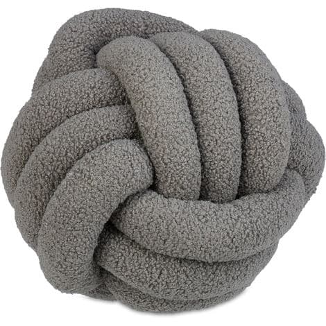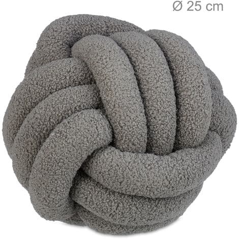 Relaxdays Knot Cushion, Decorative Knotted Pillow for Sofa & Bed, Soft Material, Braided Ball Design, Ø 25 cm, Dark Grey