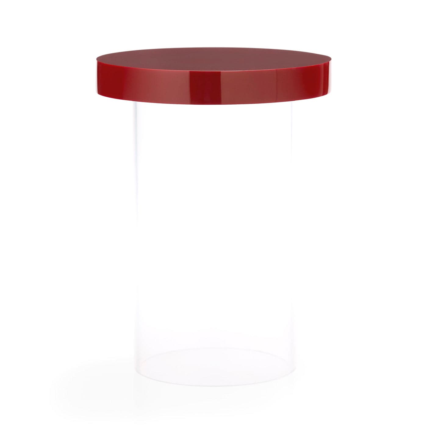 Our Acrylic Dot Tables feature opaque, moody-toned tops in colors like cinnabar, mustard, and blush, set on clear cylinder bases. Available in three sizes, these pieces can be used together or individually for versatile styling. Place one wherever you need a surface or combine with shorter tables to create visual layers.