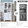 With Microwave Shelf: The hollow shelf design can be used to place small appliances such as microwave ovens and ovens. The size of 12"H*13.7"*27.5" is suitable for most microwave ovens and ovens, providing more convenience and flexibility for your kitchen. Adjustable Shelves: The height of the shelves can be freely adjusted according to your needs, and it is easy to adapt to items of different heights. Whether it is tableware, food or small kitchen appliances, they can be neatly stored to make your kitchen more orderly. Magnetic Door Closure: The strong magnetic design ensures that the cabinet door is tightly closed to prevent dust and debris from entering and keep the interior clean. At the same time, the opening and closing sound of the magnetic door is gentle and will not produce noise, providing you with a quiet use experience. Anti-Dumping Device: The specially designed anti-dumping device enhances the stability of the cabinet and ensures safe use. Even when placing heavy objects, it can effectively prevent the cabinet from tipping over and protect the safety of you and your family. Adjustable Feet: 4 adjustable feet can be adjusted in height according to the unevenness of the ground to ensure that the cabinet can be placed stably on any ground and keep it level to avoid shaking and instability caused by uneven ground.