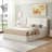 Latitude Run® Queen & King Size Upholstered Lift Up Storage Bed Frame with Velvet Headboard, Soft Wingback Design, Hydraulic Gas Lift, Spacious Underbed Storage & Durable Wood Slats – White & Ocher