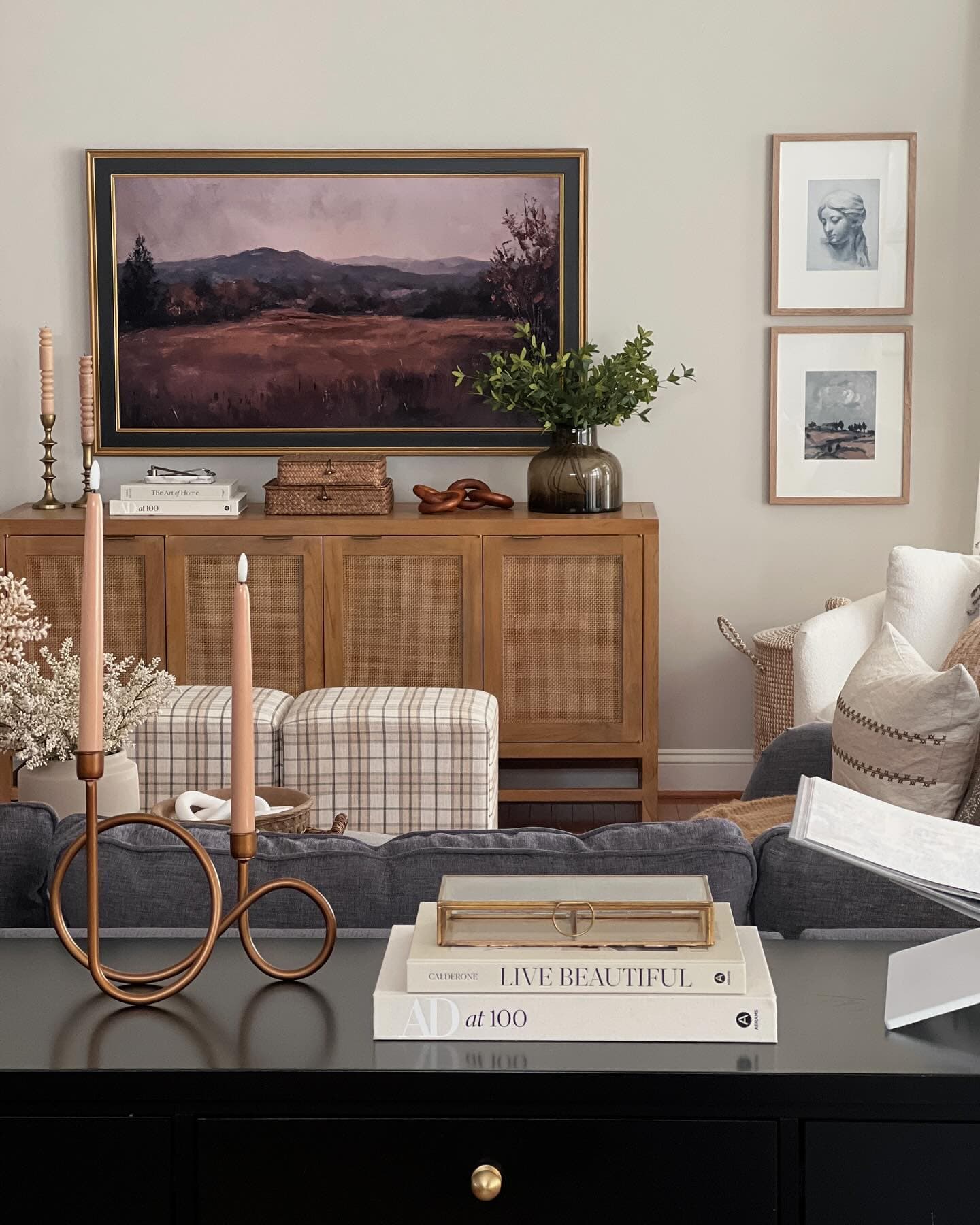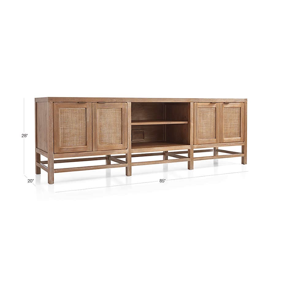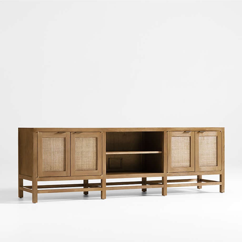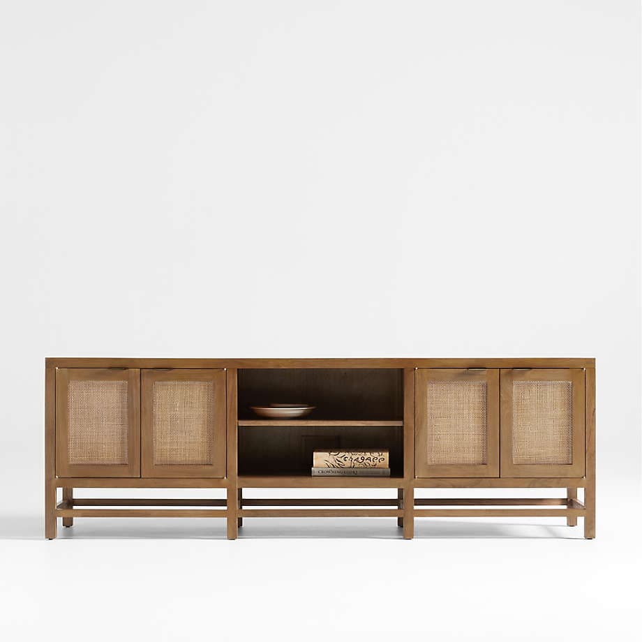 Blake 85" Light Brown Teak and Rattan Storage Media Console